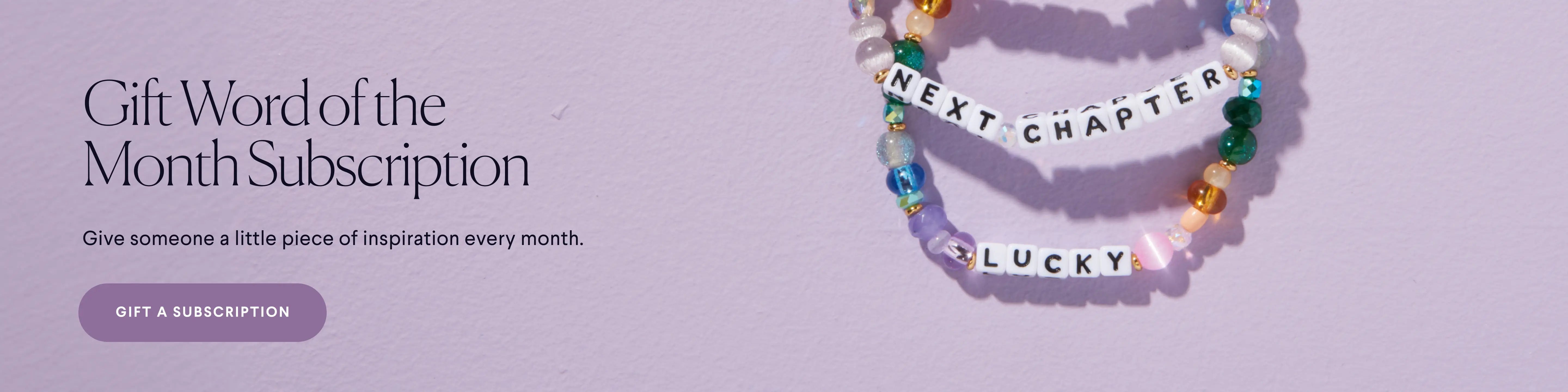 Each month of your subscription brings a bracelet with an exclusive Little Word you won’t find anywhere else. You can also gift this subscription to someone who could use a little encouragement. Shop the gift version here.